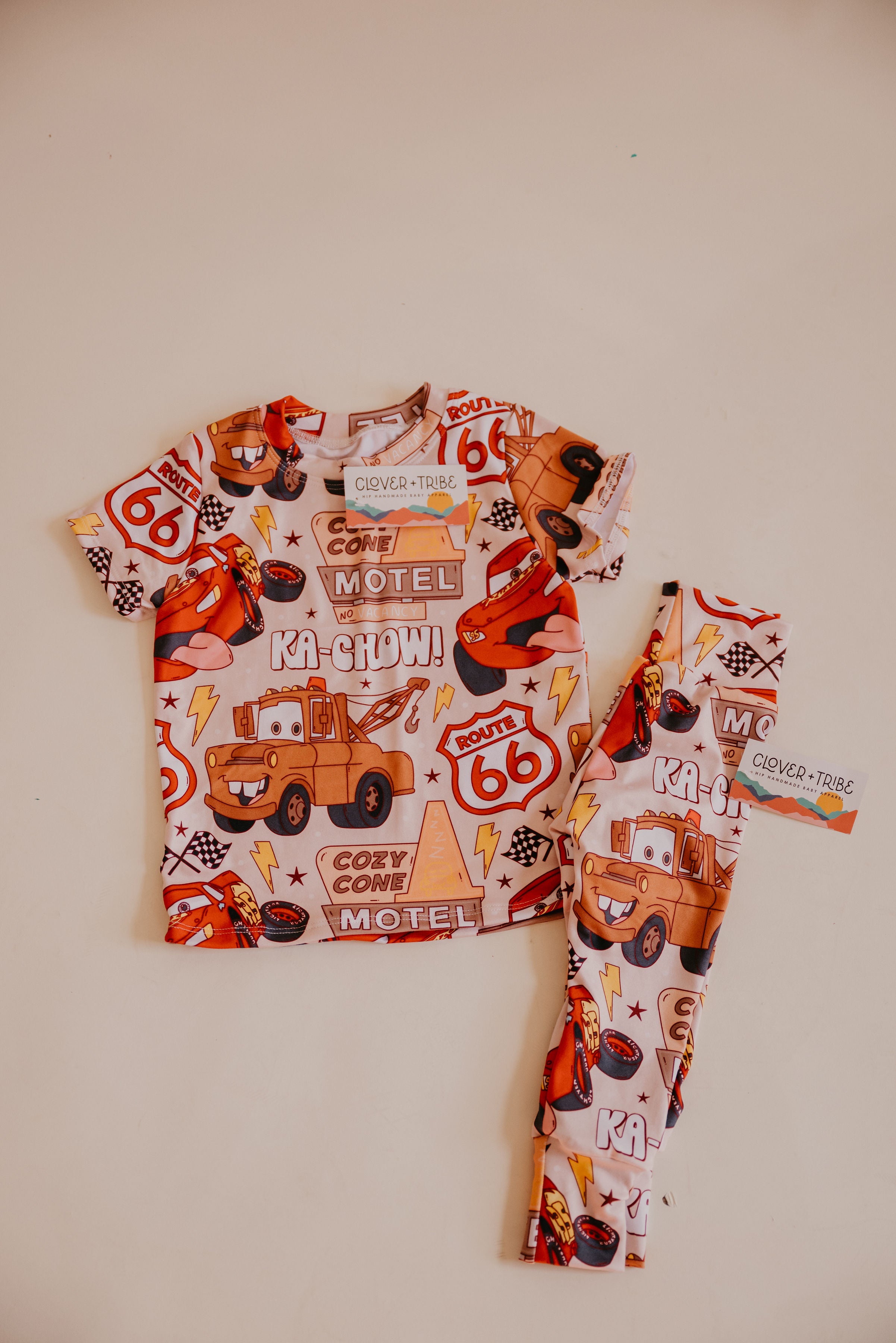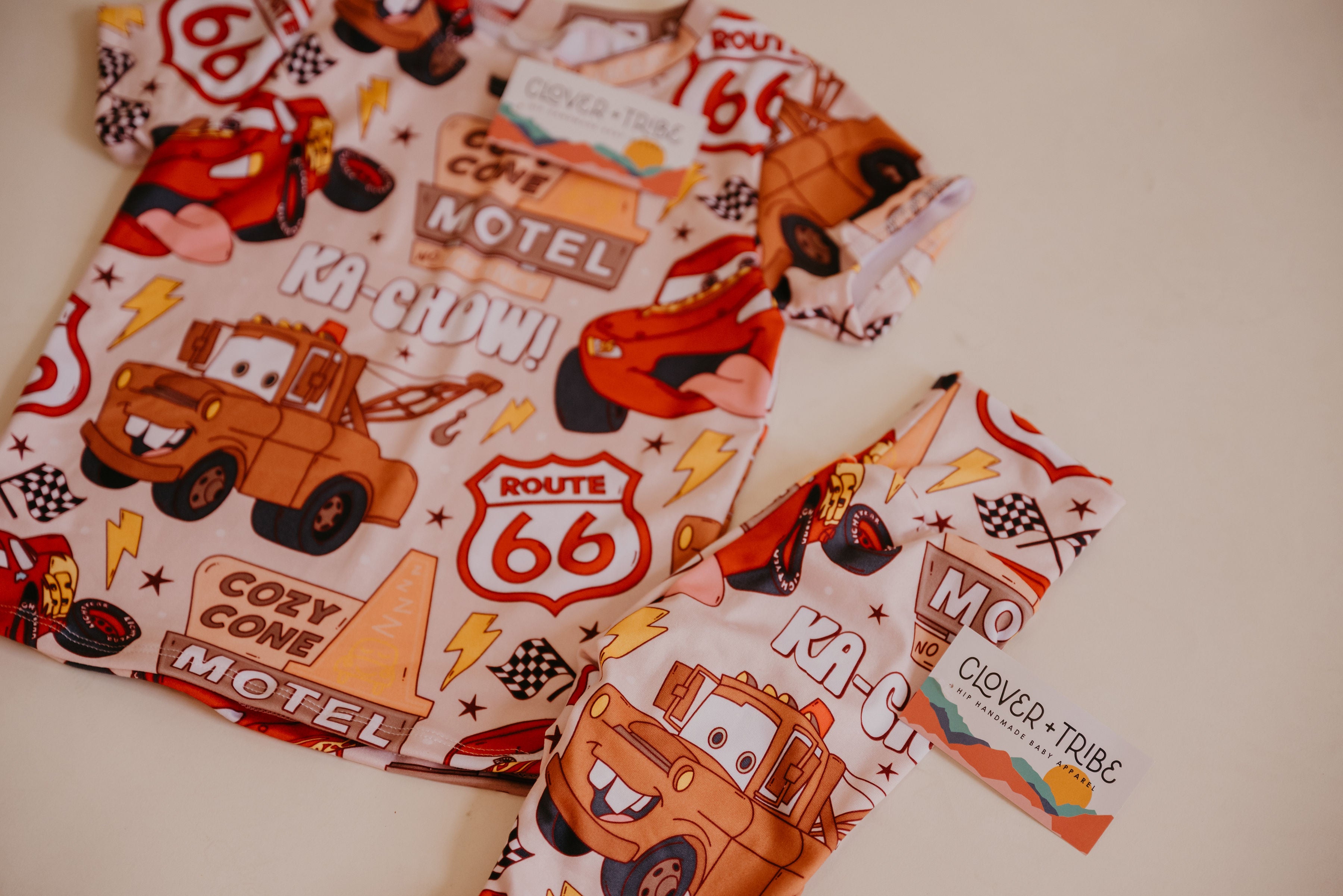 Handmade items made in sizes NB-5/6T. Made with high quality fabric for extra durability and stretch. Due to fabric placement when cut-- expect slight pattern variation!